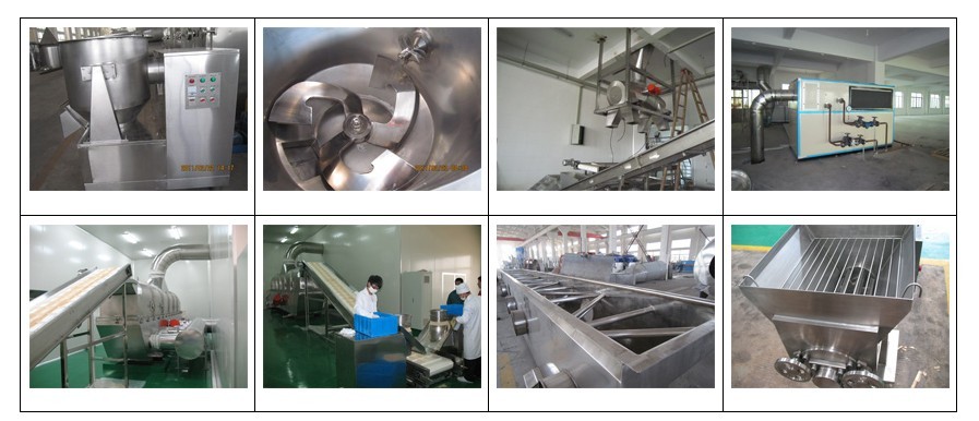 我公司可根據(jù)用戶的實(shí)際要求進(jìn)行工程設(shè)計(jì),目前單條生產(chǎn)線的產(chǎn)量有100kg/h、200kg/h、300kg/h、500kg/h、800kg/h、1500 kg/h等。雞精生產(chǎn)主要包括粉碎、混合、制粒、干燥、分篩、加香等步驟,我公司生產(chǎn)的雞精生產(chǎn)線具有工藝設(shè)計(jì)緊湊、設(shè)備制作精美、流水化運(yùn)作程度高、產(chǎn)品品質(zhì)穩(wěn)定、易清潔保養(yǎng)等特點(diǎn)。設(shè)備與物料接觸部位全部采用優(yōu)質(zhì)不銹鋼材料,并經(jīng)過(guò)精細(xì)拋光,耐鹽份腐蝕,清洗更方便,符合食品生產(chǎn)管理的QS要求及GMP標(biāo)準(zhǔn)。