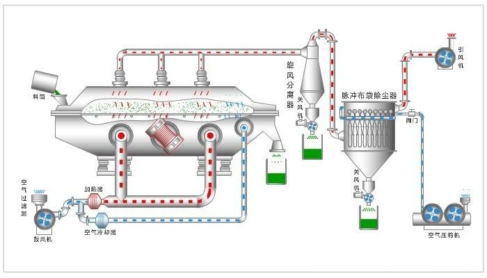 ZLG振動(dòng)流化床干燥機(jī)結(jié)構(gòu)和生產(chǎn)流程圖